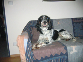 die schöne English Setter Hündin ist zu einem sehr netten Rentnerehepaar in ein schönes Haus mit Garten gezogen. Sie fühlt sich dort sichtlich wohl und ihre Besitzer sind ebenfalls sehr glücklich mit der freundlichen Hündin, deren einzige Macke es ist, vom Tisch zu klauen, wenn sich die Gelegenheit bietet. Aber auch das wird ihr verziehen. Sie muss nie alleine sein und Sydney hat mit diesem schönen Zuhause nun endgültig ihr Glück gefunden. |