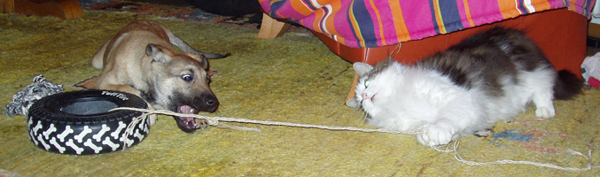 Attila und Artos die beiden Welpen unserer ehemaligen Tierheim-Hündin Sina habe jeweils ein tolles Zuhause bei hundeerfahrenen Familien bekommen. Artos ist der Spielkamerad eines hundeliebenden 6-jährigen Mädchens geworden und Attila der von zwei Mädchen im Teenie-Alter. In beiden Familien müssen die Welpen nicht alleine sein, weil immer jemand zu Hause ist, sie dürfen mit im Bett schlafen, werden mit Hundeverstand erzogen und haben nach einem guten Start ins Leben nun auch alle Möglichkeiten für ein langes glückliches Hundeleben in tierlieben Familien. |