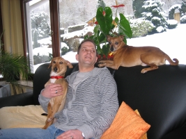 nachdem sein Herrchen gestorben war, trauerte Sol anfangs sehr im Tierheim. Als er den ersten Schock überwunden hatte, und wieder am Leben teilnahm, zeigte er allerdings allen deutlich, dass er nur ein neues Herrchen akzeptieren würde: unseren Charly. Nur für ihn hatte er Augen, allen anderen gegenüber zeigte er sich desinteressiert, teils sogar unfreundlich. Charly hatte schon letztes Jahr den schwierigen Rüden Max übernommen, nun hat er auch noch Sol dazugenommen. Die beiden Rüden verstehen sich prima und Sol ist nun endlich wieder glücklich. Sol und Max sind gute Beispiele dafür, dass es "gefährlich" sein kann, im Tierheim zu arbeiten. Irgendein Tier bleibt immer "hängen".