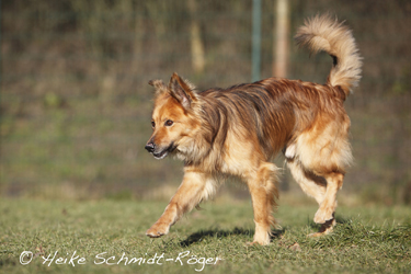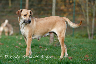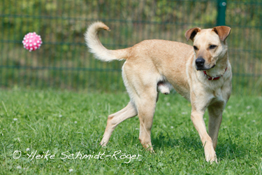 Canela die kleine 8 Monate alte Mischlingshündin hat das Tierheim nach einer Woche wieder verlassen. Sie ist zu einem jungen Paar gezogen und leistet nun einem Labradorrüden Gesellschaft. Die beiden Hunde verstehen sich prima, toben wunderbar miteinander. Da die Eltern bzw. Schwiegereltern in einem Haus mit großen Garten direkt gegenüber wohnen und alle zu verschiedenen Zeiten arbeiten gehen, müssen die beiden Hunde nie alleine sein. Die pfiffige Hündin wird mit vielerlei Spielen und auch mit Hundesport beschäftigt. |