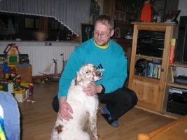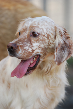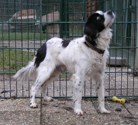 Nevio der fröhliche English Setter Rüde ist bei einer sehr netten tierlieben Familie mit einem 4-jährigen Sohn eingezogen. Außer ihm leben in dem großen Haus mit Garten noch zwei hundegewöhnte Katzen, mit denen Nevio keinerlei Probleme hat. Er muss fast nie alleine sein und genießt sein neues Leben in vollen Zügen. Besonders hängt er an seinem neuen Herrchen, zeigt aber auch allen anderen Familienmitgliedern, wie glücklich er in seinem neuem Zuhause ist. |