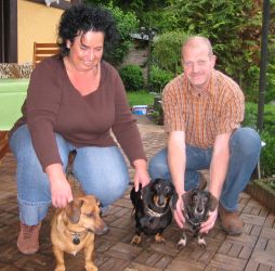 Jacky der kleine Kurzhaardackel musste wegen gesundheitlicher Probleme seiner Besitzer ins Tierheim. Er war sehr unglücklich und hat zum Glück schnell ein wunderbares neues Zuhause gefunden. Er lebt nun bei einem sehr netten Ehepaar in einem Haus mit großem hundegerechten Grundstück mitten im Grünen. Seine neuen Besitzer haben sich sofort in ihn verliebt und ihn zu sich geholt. Sein Zuhause teilt er sich mit zwei weiteren Dackeln, mit denen er sich blendend versteht. Außerdem gibt es Katzen, Kleintiere, Exoten und zwei Ponys. Langweilig wird es in jedem Fall nie für den kleinen Kerl und wenn seine Leute auf der Arbeit sind, ist die Mutter seines neuen Frauchens da, die sich liebevoll um die Hunde kümmert. Jacky hat nun genau das passende Zuhause. Es ist für Spiel und Spaß gesorgt, Kuscheleinheiten und Sofaplatz gehören ebenfalls zu seinem neuen Leben und er hat nun "den Himmel auf Erden". |
