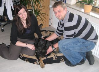 Bär einige Tage nach Benny ist auch sein Kumpel Bär wunderbar vermittelt worden. Er ist zu einem Ehepaar in ein Haus mit großen Garten gezogen. Dort muss er nur einige Stunden täglich alleine bleiben und kann sein Leben wieder in einer Familie genießen. Für seine neuen Besitzer war es Liebe auf den ersten Blick, auch wenn sie erstmal von Bärs Größe beeindruckt waren. Sein liebes Wesen hat aber alle schnell überzeugt. Es stört sie auch nicht, dass wegen einer Ohrentzündung noch ein paar Tierarztbesuche anstehen, bei den wiederholten Besuchen und Spaziergängen hat Bär sie einfach begeistert. Wir freuen uns, dass die beiden Pechvögel Benny und Bär jeweils so schnell so tolle neue Besitzer gefunden haben, obwohl beide ja auch nicht jung sind.