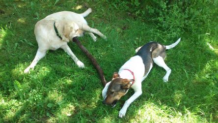 der bildschöne Hütehund-Mischling hat genau das richtige Zuhause gefunden. Er ist zu einer sehr netten Biologie-Studentin und deren Glatthaarfoxterrier in ein Haus mit großem Garten gezogen. Die drei wohnen in einer sehr ländlichen Gegend bei Marburg. Die beiden 3-jährigen Rüden verstehen sich blendend, haben sofort angefangen zu toben und so schnell nicht mehr aufgehört. Nun kann Twitter sich so richtig austoben und hat endlich ein eigenes Zuhause, wo er ausgelastet ist und wo er andererseits auch mal zur Ruhe kommen kann.