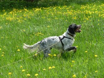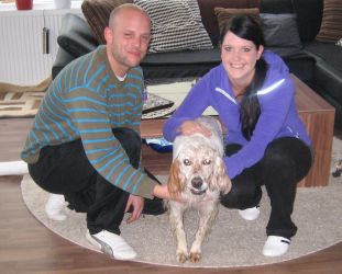 der freundliche English Setter Rüde ist bei einer sehr netten settererfahrenen Familie eingezogen. Er lebt nun in einem schönen Haus mit rießigem Abenteuer-Grundstück. Wenn er mag, kann er im Teich schwimmen, ansonsten buddeln, stöbern, toben oder einfach faulenzen. Sein Frauchen ist zuhause, so dass er nur gelegentlich mal alleine bleiben muss. Sowohl bei seinen neuen Besitzern als auch bei Aizo war es Liebe auf den ersten Blick und Aizo hat sich sofort zuhause gefühlt und würde sein neues Heim garantiert gegen nichts anderes mehr eintauschen wollen. Er hat sein Glück gefunden. |