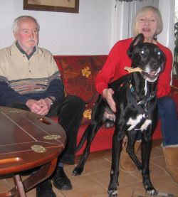 Caballo der sanfte große Doggen-Mischlingsrüde hat ein wunderbares neues Zuhause gefunden. Er ist zu einem sehr netten hundeerfahrenen Ehepaar in ein Haus mit Garten gezogen. Seine Besitzer sind im Ruhestand und so muss Caballo fast nie alleine sein. Sein neues Leben besteht nun aus langen Spaziergängen mit anderen Hundebesitzern, vielen Schmuseeinheiten, toben im Garten und einfach aus allem, was "Hund" Spaß macht. Caballo hat sich rießig gefreut, als er in seinem neuen Zuhause ankam, ist durch den Abenteuer-Garten gestürmt, hat alle Begrüßungsleckereien verschlungen, stolz seine Kauknochen durch die Gegend getragen und allen gezeigt, dass er nun richtig glücklich ist. Er kam sehr dünn im Tierheim an und hat den Stress nicht gut vertragen, nun kann er zur Ruhe kommen, wieder zunehmen und endlich glücklich in einer Familie leben. Er ist angekommen.