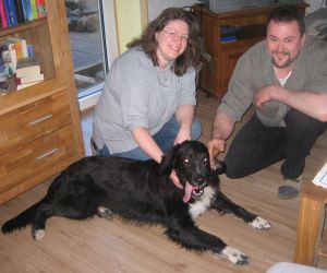 Caffee der schöne Neufundländermischling ist zu einer sehr netter Familie mit zwei 16-jährigen Kindern in ein Haus mit Garten gezogen. Sie hatten vor vielen Jahren bereits aus unserem Tierheim einen Hund der kürzlich gestorben war. Caffee muss 3 x pro Woche je 5 Stunden alleine bleiben, das dürfte aber für ihn nach einer Eingewöhnungszeit kein Problem sein. Er wird mit seinen neuen Besitzern die Hundeschule in Dillenburg besuchen, so hat er auch weiterhin Kontakt zu Artgenossen. Der verspielte und lernfreudige Hund wird sicherlich ein prima Schüler sein und seinen neuen Leute viel Freude machen.
