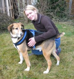 Luna hatte aus familiären Gründen ihr Zuhause verloren und musste zum Glück auch nicht lange im Tierheim warten bis sie wieder eine eigene Familie fand. Die schöne 5-jährige Berner Sennen-Mischlingshündin ist nach Nordhessen zu einem sehr netten hundeerfahrenen Ehepaar geogen. Sie teilt sich Haus und Garten mit zwei Main Coon Katzen. Dass sie täglich ein paar Stunden alleine bleiben muss, ist für Luna kein Problem, sie hat es schon in ihrem alten Zuhause gelernt. Besonders freut es uns, dass ihre neuen Besitzer kein Problem damit haben, dass Luna HD hat, sie freuen sich einfach auf eine gemeinsame Zeit. Da das Haus einen ebenerdigen Zugang hat und durch regelmäßige Spaziergänge der Muskelaufbau gefördert wird, wird Luna sicherlich noch viele schmerzfreie glückliche Jahre vor sich haben.