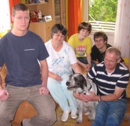 Whisky der sanfte Deutsch Drahthaar-Mischling ist zu einer sehr netten Familie mit drei teils erwachsenen Söhnen gezogen. Er wohnt nun in einem großen Haus mit Garten und muss selten alleine sein, da bei einer großen Familie oft jemand zuhause ist. Er hat sich seine neuen Besitzer selbst ausgesucht, manch andere Interessenten vorher hat er eisern ignoriert. Hier stimmt die Chemie sofort. Er hatte bisher noch nie ein schönes Zuhause, war anfangs auch sehr vorsichtig bei uns. Umso schöner zu sehen, wie wohl er sich bei seinen neuen Besitzern fühlt. Er ist zuhause angekommen.