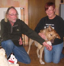 Gesa (jetzt Emmi) die sanfte Gesa ist ebenfalls schon nach einer Woche ausgezogen. Sie ist zu einer zu netten hundeerfahrenen Dame in eine Wohnung mit Terrasse gezogen. Wenn ihr Frauchen auf der Arbeit ist, ist eine liebevolle Betreuung durch die Eltern, Nachbarn und einen Hundesitter gesichert. Für beide war es Liebe auf den ersten Blick und die Chemie passt einfach. Gesa wird sich in dem ruhigen Haushalt mit vielen Kuscheleinheiten aber auch langen Spaziergängen sehr wohl fühlen und auch Kontakte zu anderen Hunden stehen auf dem täglichen Programm. Gesa hat sich ihrem neuen Frauchen sofort angeschlossen, auch wenn sie ansonsten immer etwas länger braucht, um Vertrauen zu fassen. Sie hat sehr deutlich gezeigt, dass sie ihr neues Frauchen "adoptiert" hat.