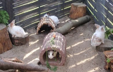Zwergkaninchen Diese vier Kaninchen kamen mit weiteren Geschwistern als Babies in unser Tierheim und hatten das große Glück, ein tolles kaninchengerechtes Zuhause zu finden. Erst wollte die Familie eigentlich nur zwei Tiere adoptieren, doch dann wurde der eigens vom neuen Kaninchenpapa gebaute Auslauf noch viel größer, als ohnehin geplant. Und so wurden aus zwei ganz spontan vier Kaninchen, die alle froh und glücklich durchs Leben hoppeln. Wir freuen uns sehr für unsere kleinen Mümmelmänner !